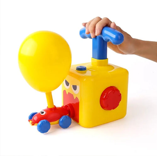 Встановить машинку, та натисніть на стрижень щоб надути повітряну кульку!